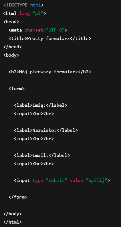 Wewnątrz formularza umieszcza się różne pola, za pomocą których użytkownik może wprowadzać dane.