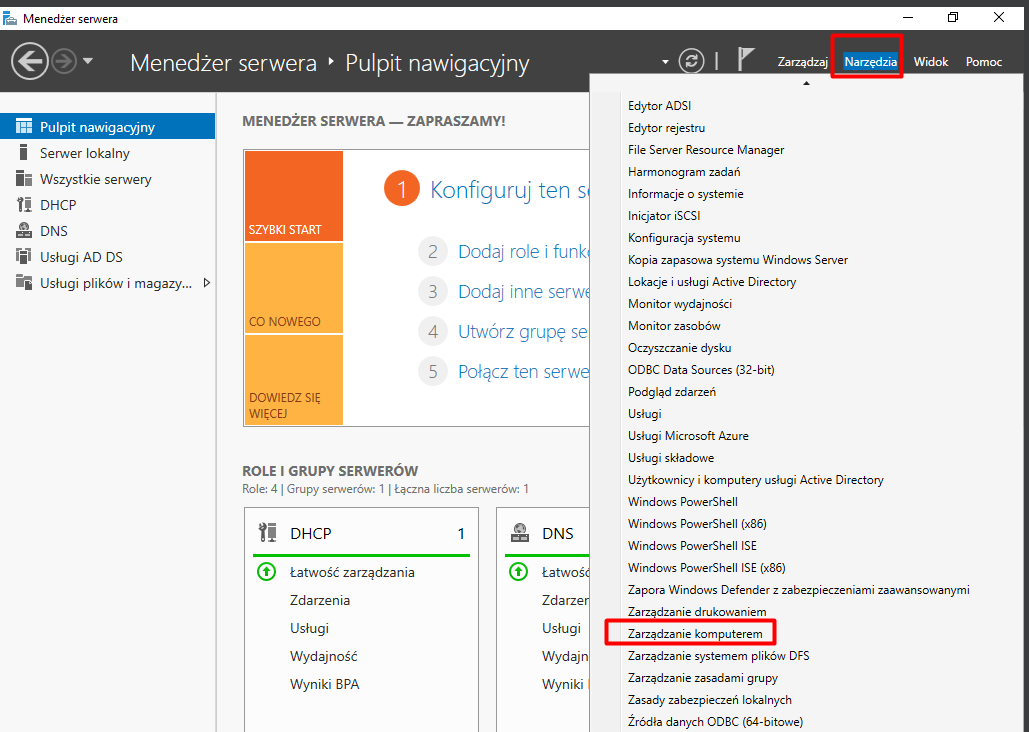 Zarządzanie udziałami sieciowymi można przeprowadzać także za pomocą narzędzia „Zarządzanie komputerem”. Po jego uruchomieniu uzyskujemy dostęp do takich funkcji, jak: