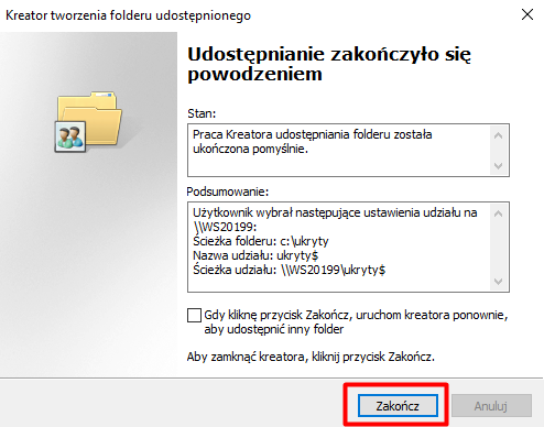 W ostatnim etapie zamykamy kreatora, klikając „Zakończ”