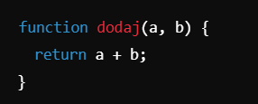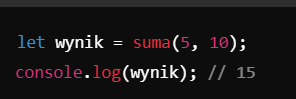 W naszym przykładzie funkcja suma przyjmuje dwa argumenty (a i b) i zwraca ich sumę.