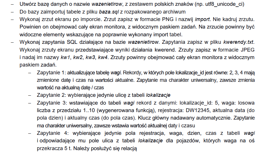 Filtruj: WHERE waga > 5 → tylko ciężkie pojazdy JOIN = „połącz, gdzie pasuje”